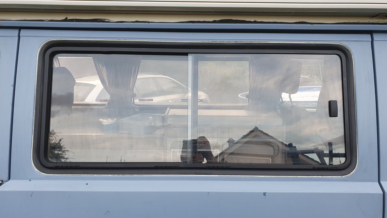 Původní origi Westfálkový termookno Bonoplex šlo ven snadno. Rám pod ním byl kupodivu naprosto netknutý. Na nové okno jsem nasadil gumu, která byla součástí dodávky, provázek a gumu i rám jsem řádně namazal. Díky tomu, že je otvírací, tak jsem okno zvládnul nasadit i sám. No posud to bylo všechno dobrý. Jedno okno venku, druhý nasazený. To horší přišlo, když jsem vylezl z auta ven. Nová guma v rozích absolutně nesedí. Všechny 4 rohy jsou odchlíplé tak 1,5cm od kastle. Zkoušel jsem okno poklepávat, všelijak s ním cvičit, jestli náhodou není nějak špatně dosedlé, ale bezvýsledně. Taktéž čas a teplo tomu evidentně nijak nepomáhá. Ty hnusný obrovský škvíry tam přetrvávají i po několika dnech